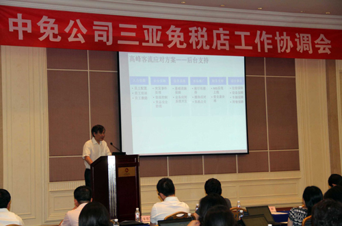 海南離島旅客免稅購物政策自2011年4月20日在中免集團(tuán)三亞免稅店試點運營至今已近三月。來自中免集團(tuán)總部、三亞免稅店、香港中免公司各相關(guān)業(yè)務(wù)部門的60余位負(fù)責(zé)人及業(yè)務(wù)骨干參加了此次會議。中免集團(tuán)盧路總裁,趙鳳副總裁、王軒副總裁、曾江前總會計師、顧納新總裁助理等領(lǐng)導(dǎo)出席了會議并參與分組研討。