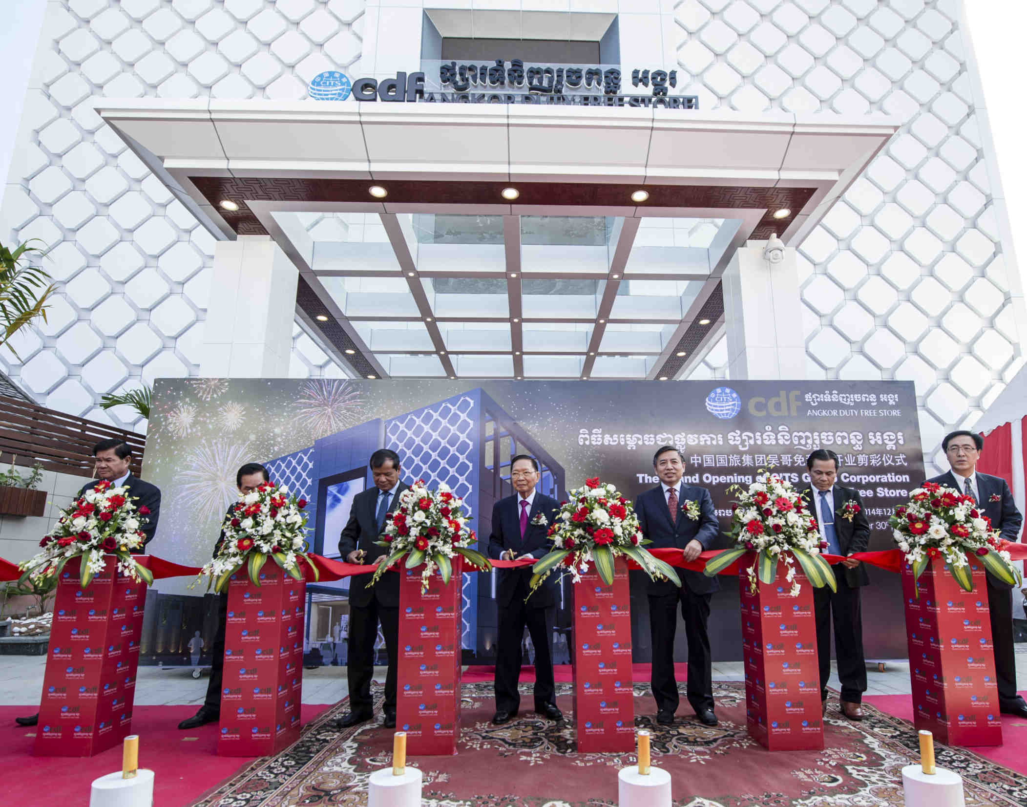 2014年12月30日,備受矚目的中國國旅集團(tuán)吳哥免稅店在柬埔寨王國暹粒市隆重開業(yè)。柬埔寨王國副首相吉春閣下、旅游部部長唐坤閣下、暹粒省市各級主要官員,國旅集團(tuán)董事長、總經(jīng)理王為民,國旅股份公司副總裁彭輝,總會計(jì)師閆建平,副總裁于寧寧,總裁助理陳志新,以及國際供應(yīng)商代表、合作伙伴代表等近200人參加了開業(yè)慶典活動。