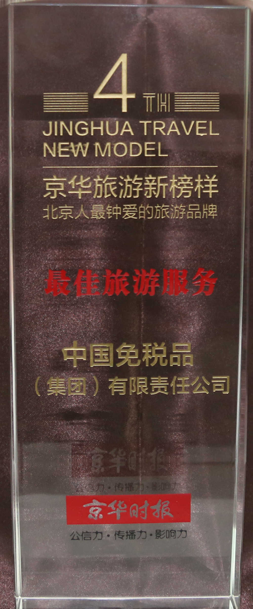 2015年3月13日,由京華時報社主辦,京華旅游周刊、京華網(wǎng)承辦的“第四屆京華旅游新榜樣——北京人最鐘愛的旅游品牌”頒獎盛典在京舉辦,中免集團榮獲年度最佳旅游服務(wù)獎。